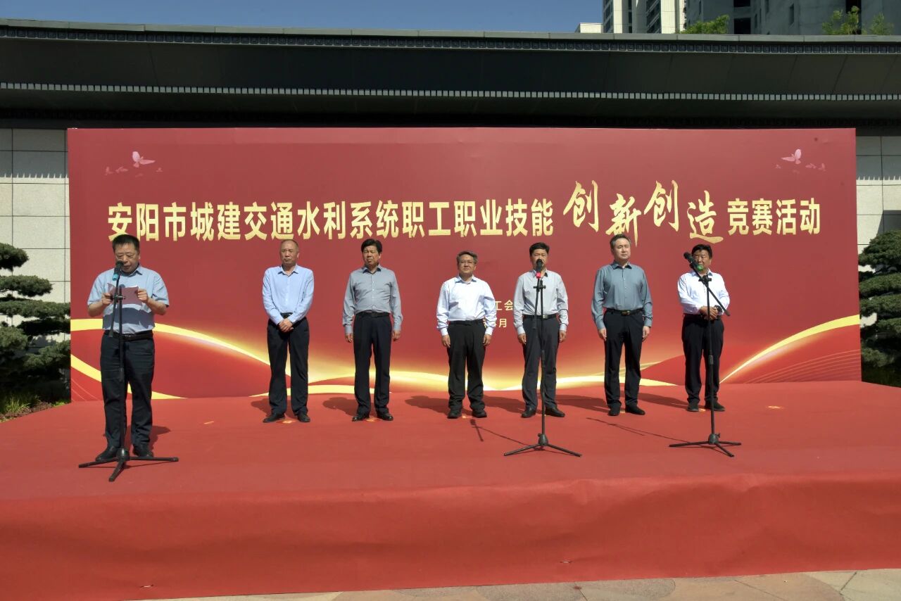 本次活动建筑行业竞赛由安阳市城建交通水利工会、安阳市建筑业协会、建筑业项目工会联合会主办,安阳建工(集团)承办。市委副书记、政法委书记黄明海,市人大常委会副主任、市总工会主席夏军,市总党组书记、常务副主席华德强,市总相关领导,城建交通水利系统相关局委领导,及各行业劳模先进代表,33个建筑企业、一线职工竞赛选手共450人参加了本次活动。